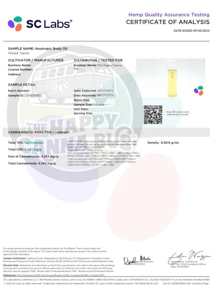 Our Nootropic Body Oil™ is 100% THC free, and delivers the purest form of CBD available.
